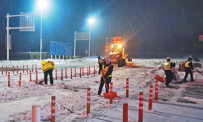 除雪車作業(yè)一刻不停,巡查保障車也嚴陣以待。