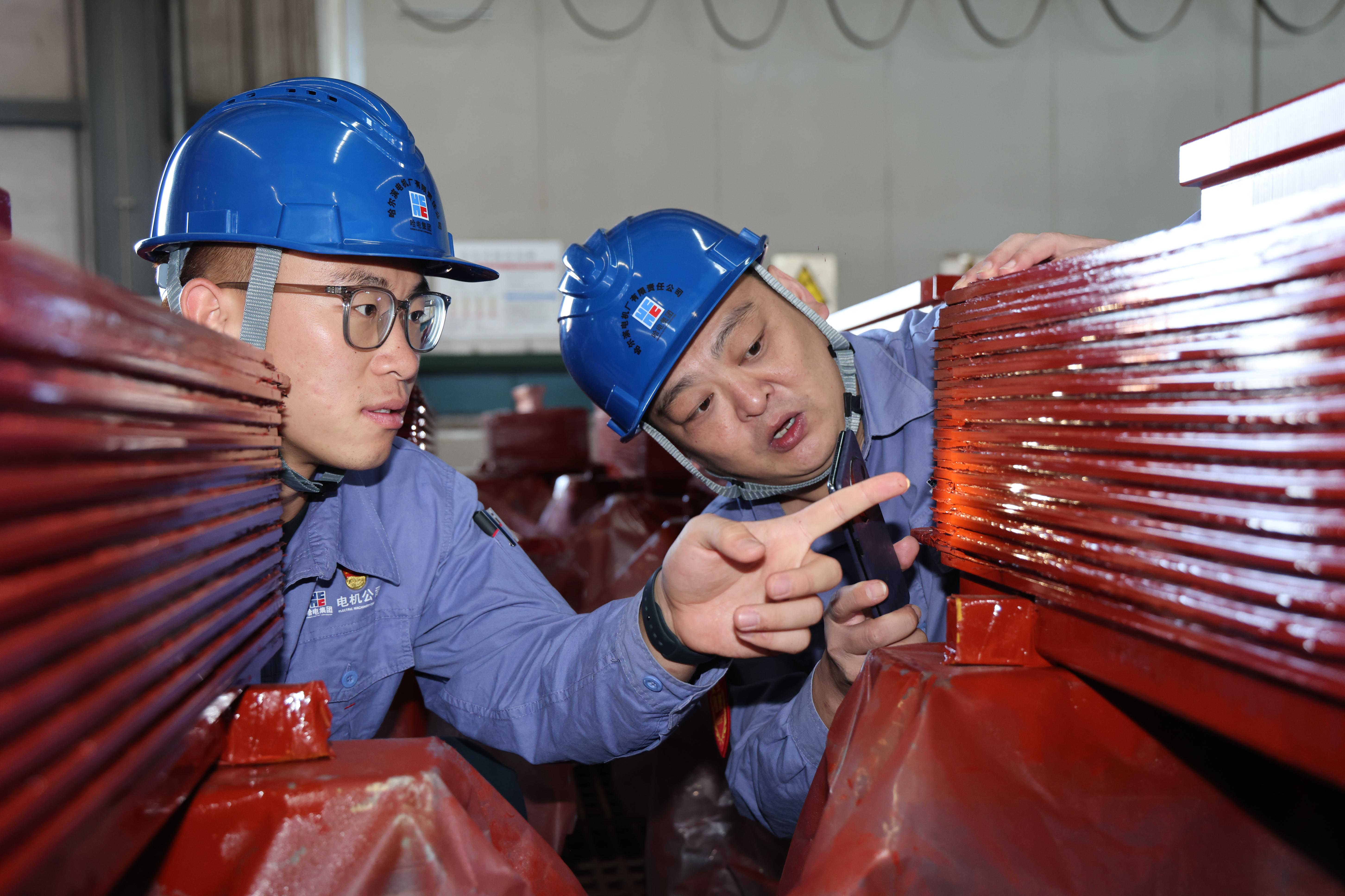 技術(shù)管理人員查看青銅峽6號(hào)機(jī)磁極裝配