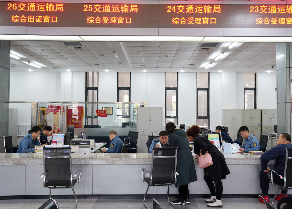 在黑龍江牡丹江市營商環(huán)境建設(shè)監(jiān)督局辦事大廳,市民在審批窗口辦理手續(xù)(2019年9月18日攝)。新華社記者 王建威 攝