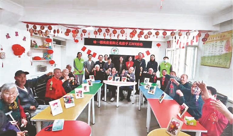 哈爾濱市第一社會福利院組織了“歡度重陽花漾手工DIY”活動。工作人員為老人介紹手工花的制作步驟和注意事項,老人對照著手工成品圖,興奮地享受這次手工DIY之旅。老人還親手制作了由艾草、茱萸、香草等中草藥填充的香囊,表達祈福安康的美好寓意,香囊一個個小巧玲瓏,色彩斑斕,清香滿滿。